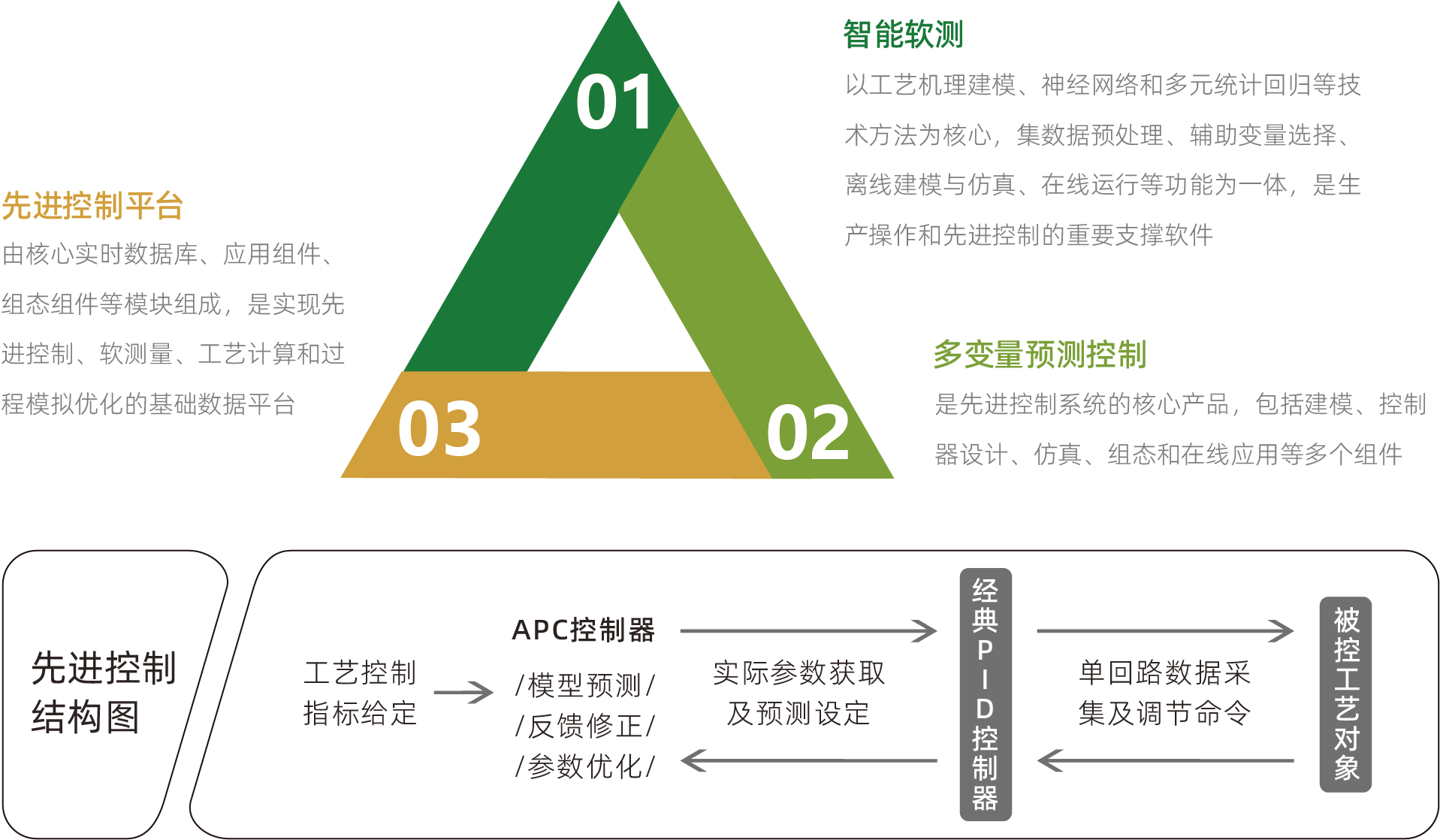 先进控制(APC)技术是流程工业企业智能工厂的核心技术之一,通常在DCS、PLC、FCS等计算机控制系统已有常规控制的基础上,采用多变量预测控制、智能控制、软测量和工艺计算等策略,提高复杂工业过程的控制品质、增强系统的抗干扰能力和鲁棒性、降低员工劳动强度,从而实现节能降本增效和提高企业综合竞争力。